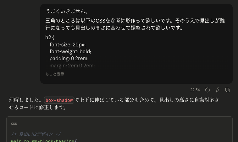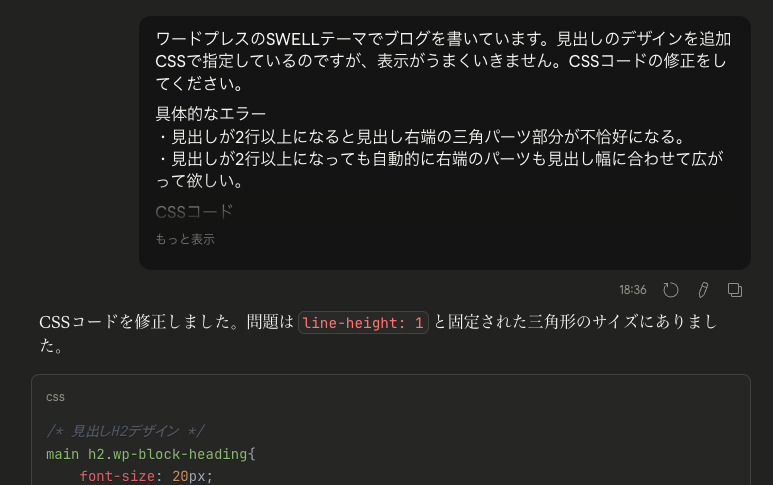 参考にしたサイトのCSSがSWELLでは反映されなかったので、AIに聞きながら進めました。