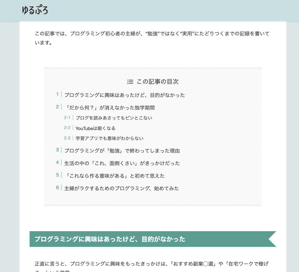 「目次が見にくい」ブログ記事を投稿してみて、違和感をかんじました。